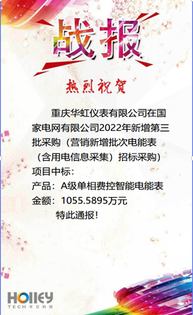 2022年3月4日,在國家電網(wǎng)組織實施的2022年新增第三批招標采購招標中,重慶華虹儀表有限公司再次實現(xiàn)中標。中標金額1055.5895萬元。