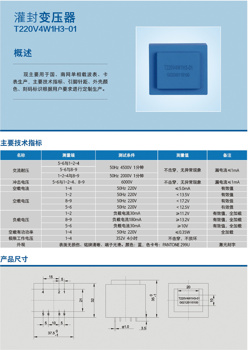 灌封變壓器 T220V4W1H3-01