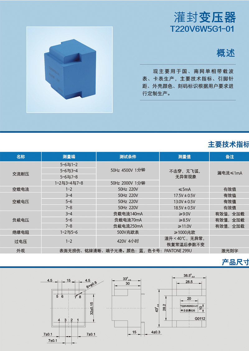 灌封變壓器 T220V6W5G1-01