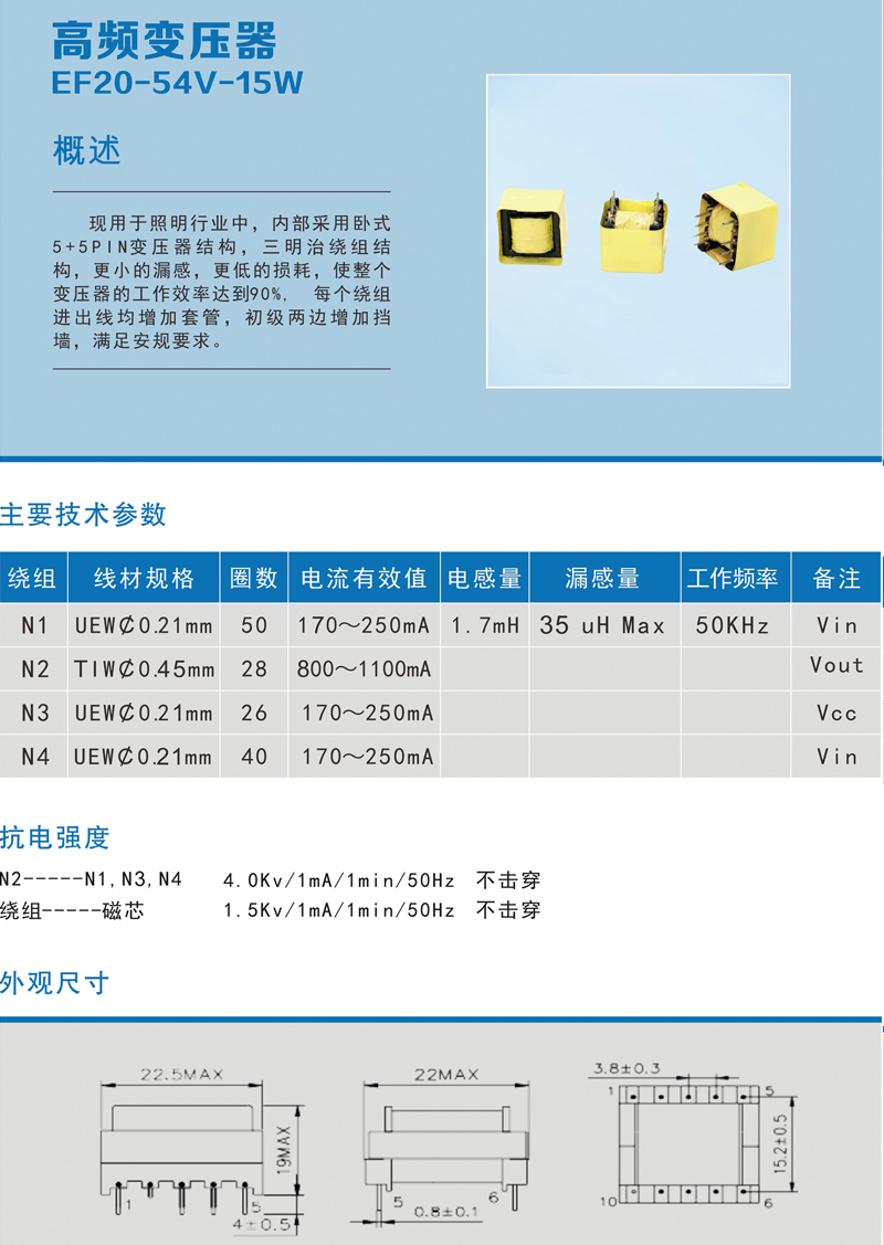 高頻變壓器 EF20-54V-15W